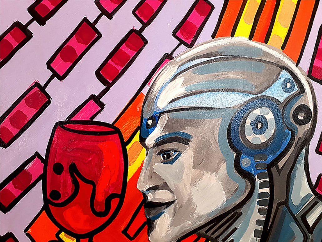 Las máquinas – robot nos dan placer y nos ahorran trabajo; es por esta razón que las construimos; qué hacemos de ellas: obras de arte. ¿Soñarán los androides, con Merlot de la bodega XX; cosecha 2023 de los parrales acariciados por el sol de diciembre, en Caucete? Al salir de la estación S.M. vi a una señora que chequeaba la hora en su celular… una máquina / reloj / que controlaba sus tareas en la mañana de jueves. 10:20 AM. Me detuve en la esquina a esperar el semáforo, otra máquina, que controlaba mis pasos… viendo pasar autos / máquinas / en carrera de transporte… y vi la ciudad con más espacio para las máquinas /calles / que para nosotros mismos y me entró el deseo cyberpunk de consumir vino… mucho vino; antes que una máquina pudiera tener la misma idea pop.